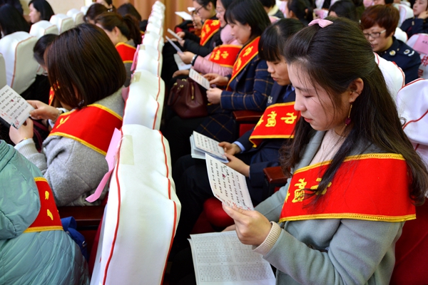 举办文艺演出,以景醒廉。开展“巾帼心向党 建功新时代”专场文艺演出,紧扣发展和廉洁的主题,运用洪山戏、歌曲、舞蹈等形式,传唱十九大精神,展示新时代新女性风貌,还精心推出廉政情景剧《铿锵玫瑰》, 用喜闻乐见的形式为女性同胞端上廉洁文化大餐,营造“治家重廉、立身重廉、教子重廉”的浓厚氛围。