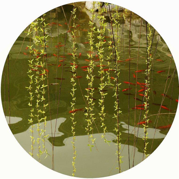 杨柳细如丝,波浅戏鱼多。