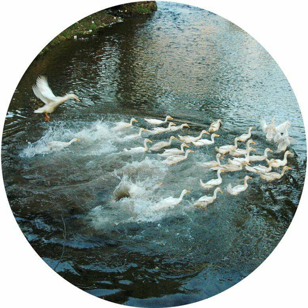 阳和东风暖春水,翠绿枝上,绿水池塘,湖中百鸟,万物争相报春归。