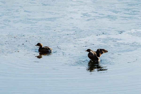 三月春动野,碧波浮乌羽。