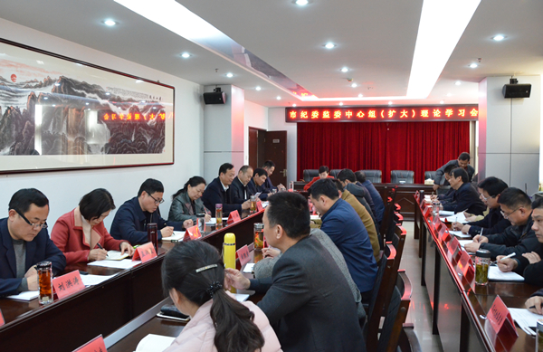 近日,宿州市纪委监委召开中心组(扩大)理论学习会。市委常委、市纪委书记、市监委主任叶莉同志主持会议并部署工作。市纪委监委领导班子成员及委各部室办、中心负责人共33人参加会议。重点学习了省纪委刘惠书记《在十届省委第四轮巡视工作动员部署会上的讲话》等内容。