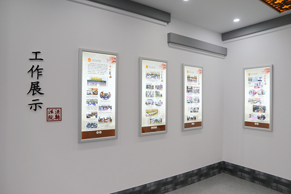 整个展馆室内以水墨工笔为构图背景,整体色调柔和淡雅,布局简洁大方,处处彰显出泾县作为“书画之乡”的独特魅力。
