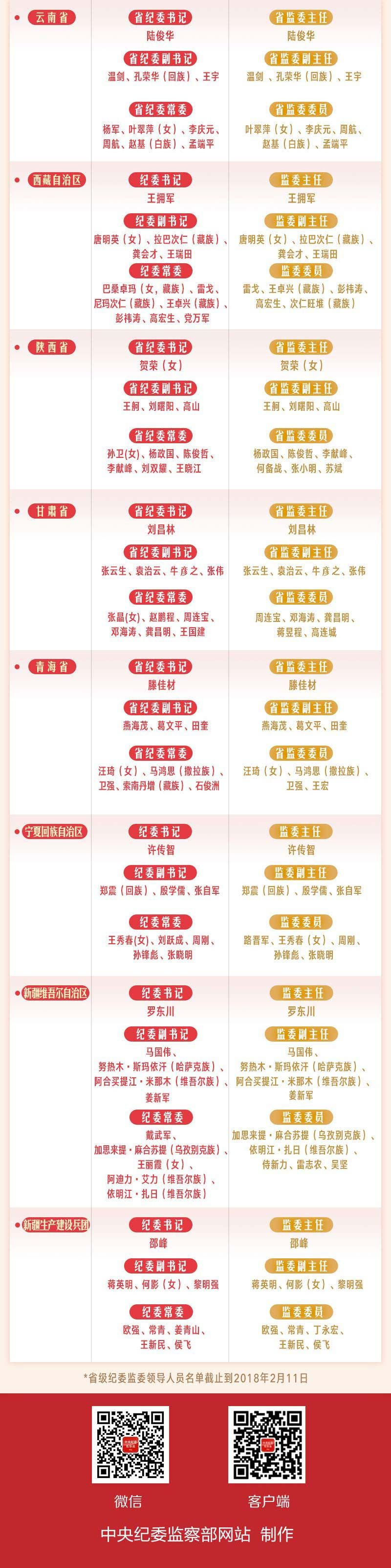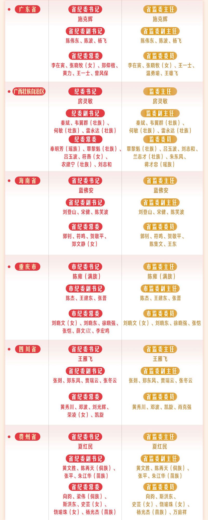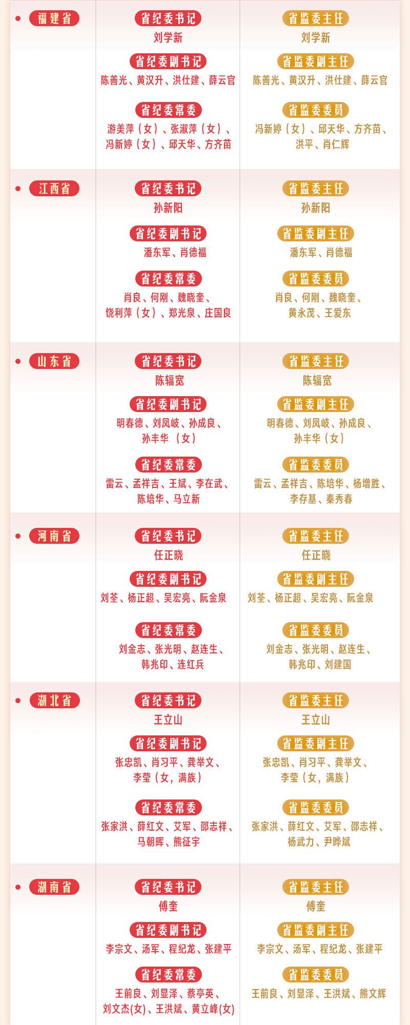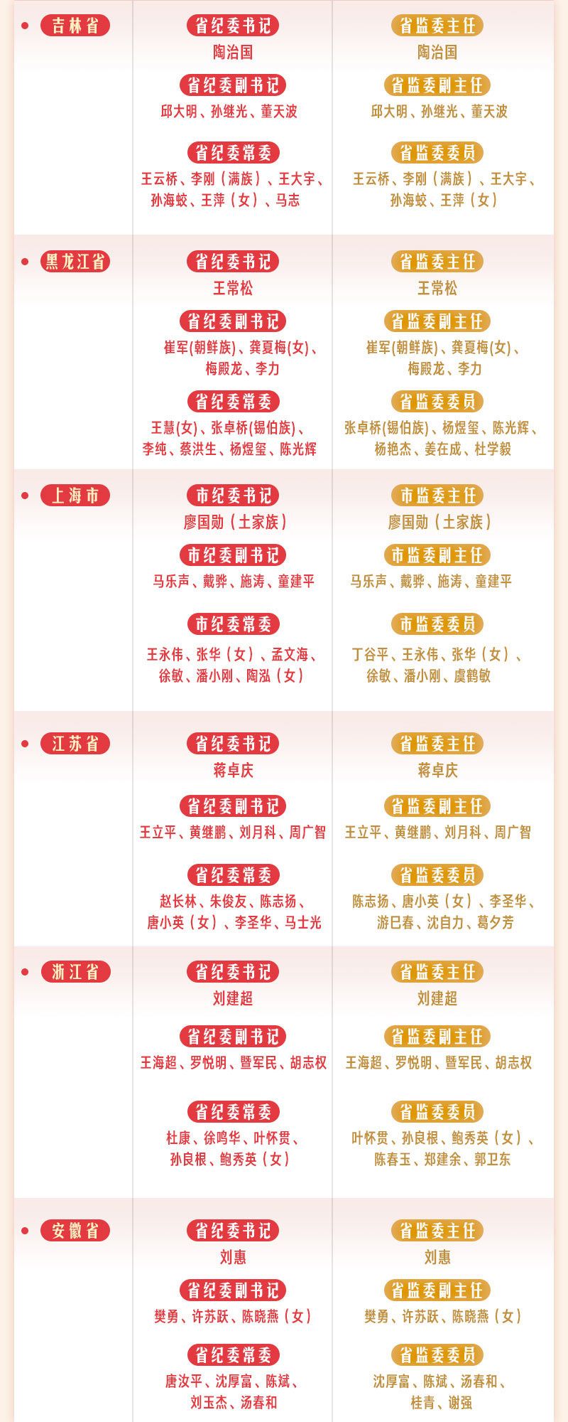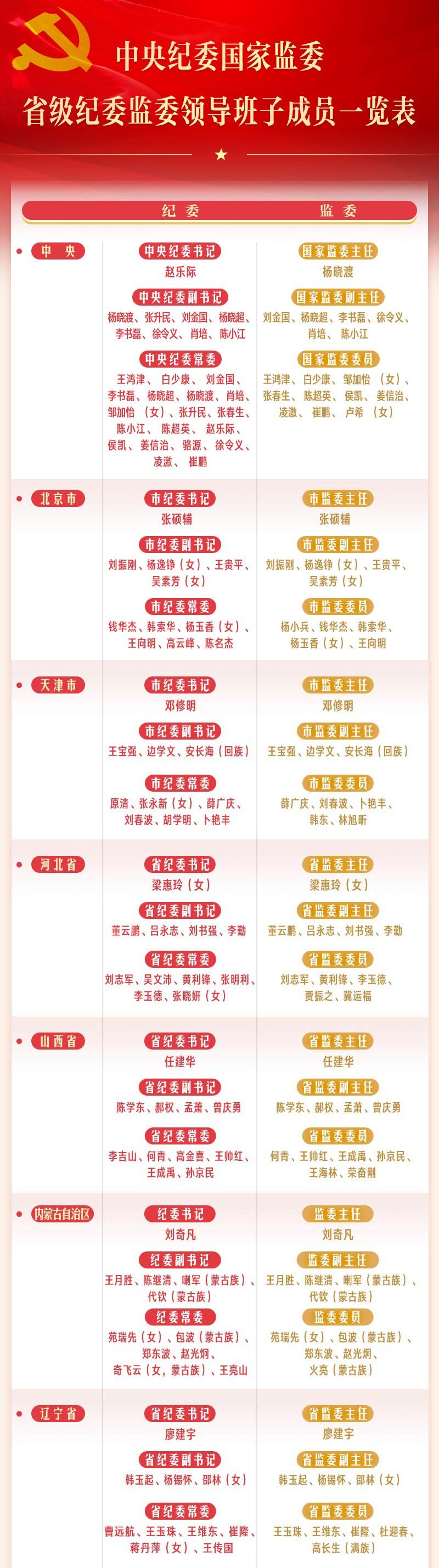 中央纪委国家监委 省级纪委监委领导班子成员一览表