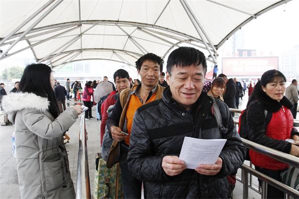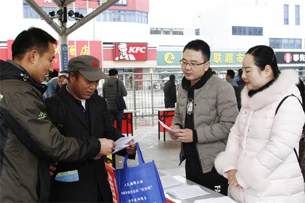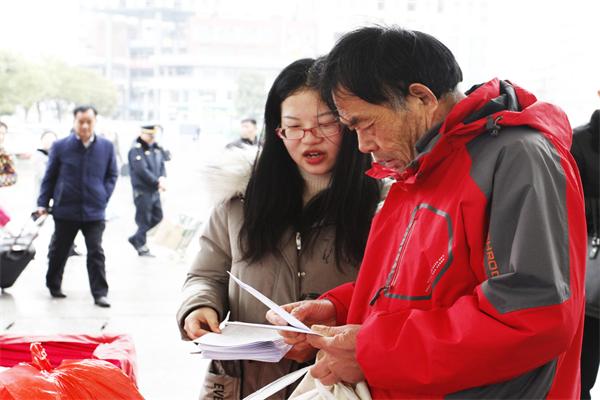 区纪委人员在进站口向旅客发放新《宪法》宣传材料