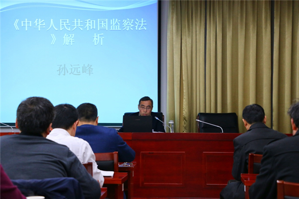 “《监察法》把所有公权力都关进制度的笼子,把监督延伸到了‘最后一公里’......”图为固镇县监委委员孙远峰同志为全县纪检监察干部讲授《监察法》。