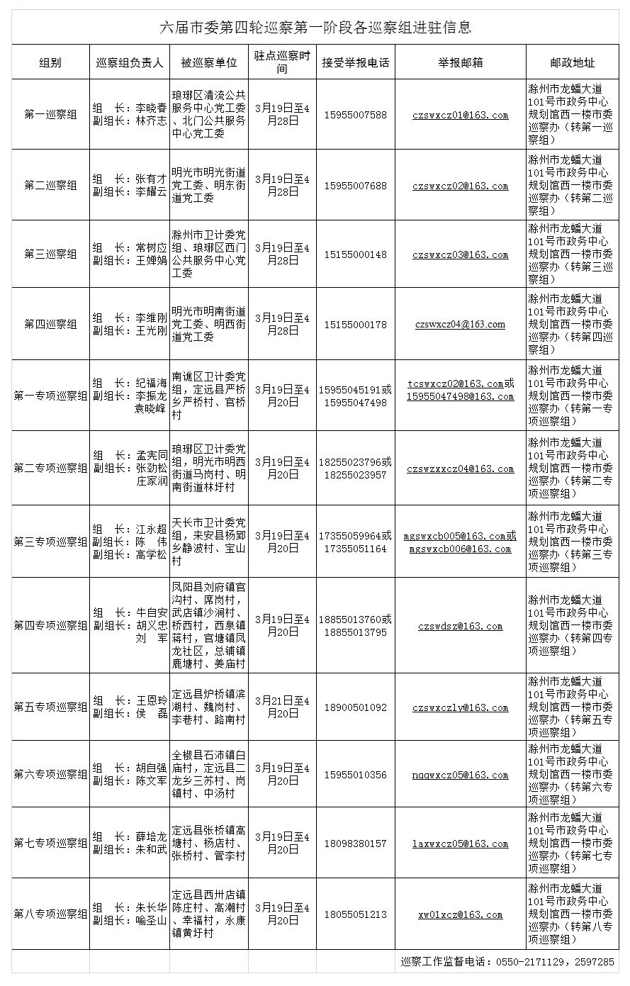六届市委第四轮巡察第一阶段各巡察组进驻信息