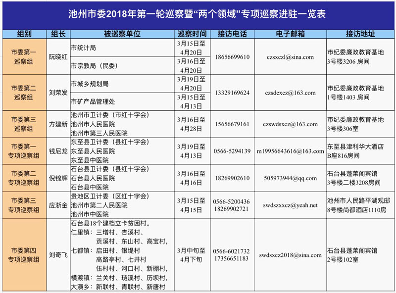 池州:2018年首轮巡察暨“两个领域”专项巡察进驻完毕 公布联系方式