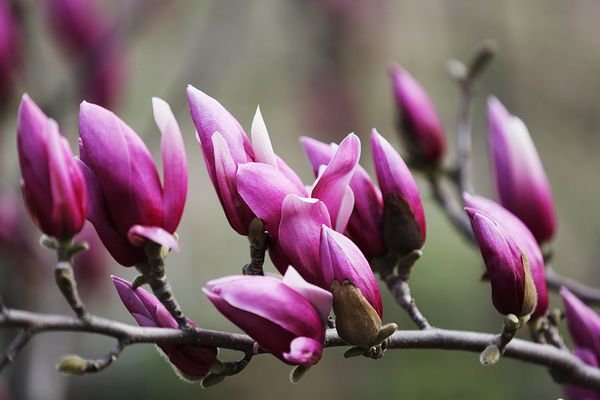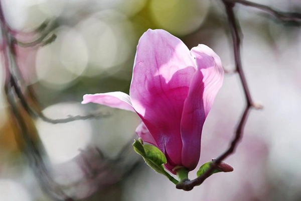 春风柔情,大美花事,玉兰临风皎皎开;刻玉玲珑,紫衣霓裳,华姿若许真仙子。