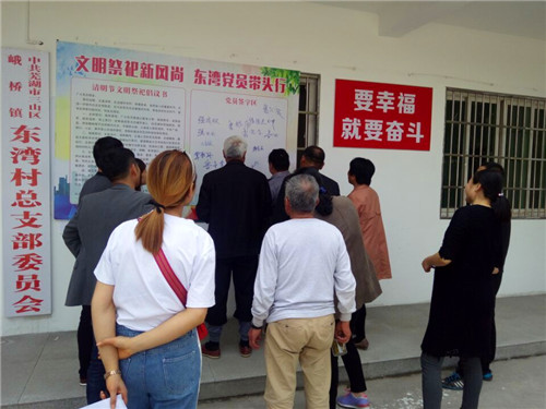 党员干部坚持带头签、党员踊跃签、群众追随签,营造文明祭祀“人人承诺”的良好风气,其中仅峨桥镇村党员干部在签名墙累计达200余人。