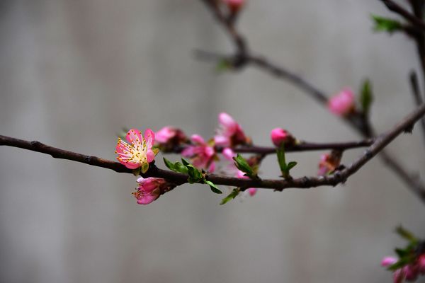 桃花桃叶俏争春,花绽新红叶凝碧。