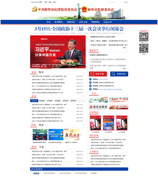 为适应纪检监察工作新形势、新任务、新要求,持续推进“开门反腐”,提高网站综合传播力,今年初,市纪委监委对原有网站功能改版升级,对版面进行优化设计。4月4日,新版蚌埠纪检监察网正式亮相。