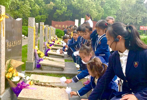 幼儿园的孩子们带着鲜花来到烈士陵园扫墓,现场聆听老师讲述革命英烈为民族复兴抛头颅、洒热血的光辉往事,在孩子们幼小的心灵播下爱国爱家的种子。
