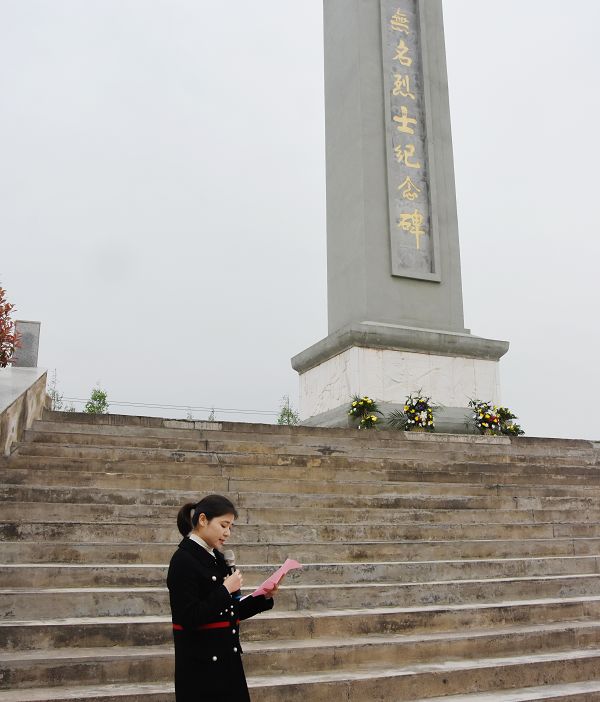 听管理人员讲解先烈们的英雄事迹和无名烈士墓的历史