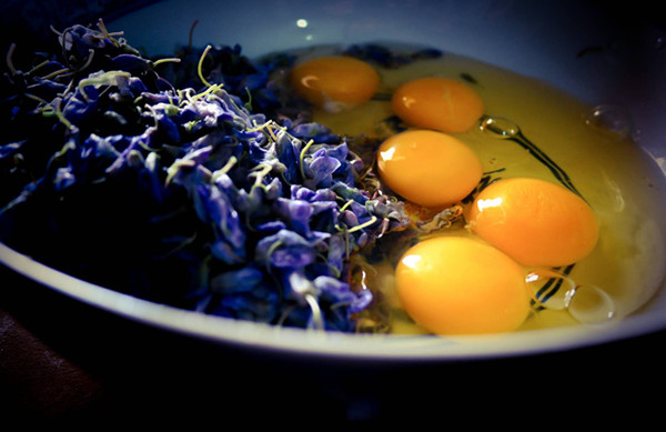 热腾腾的“周花蛋”一搭上牙齿,满口清雅之气顿时让人内心通透。黄紫相间的诱人颜色,不由得令人想起《陌上桑》里,古典美女代表罗敷引人注目的清丽装扮:缃绮为下裙,紫绮为上襦。
