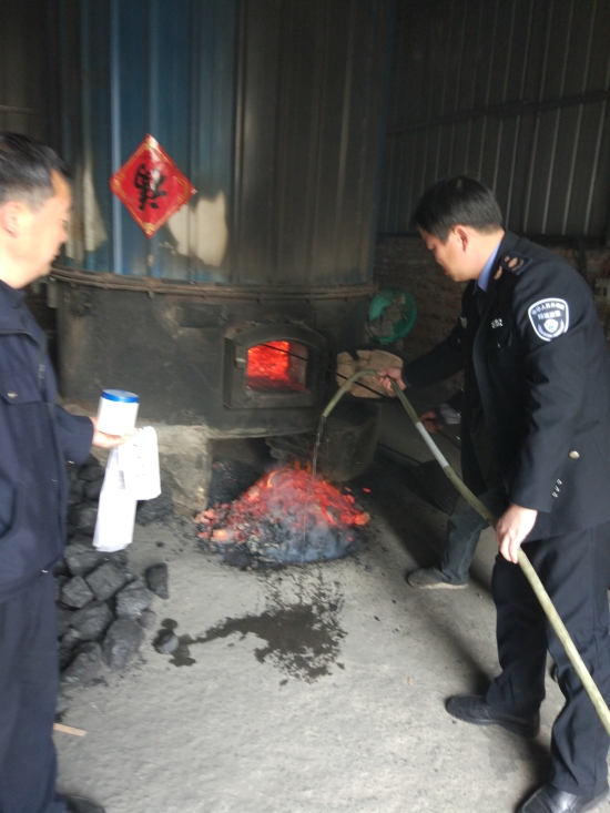 区环保局会同区公安分局、区国土局、区安监局和区经信委联合执法,强制拆除污染严重的企业