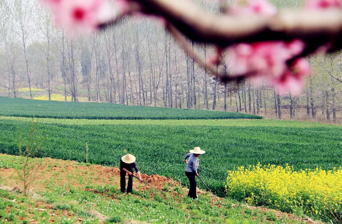 桃花嫣然出篱笑,麦草青青耕耘忙