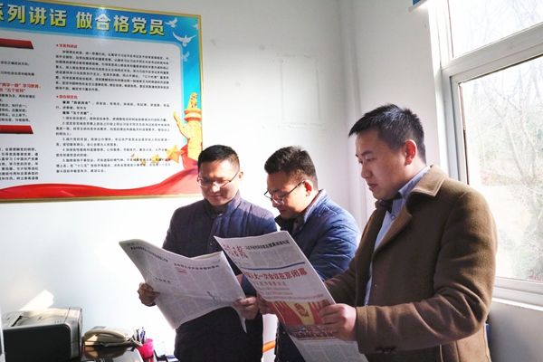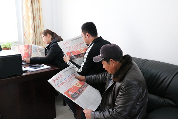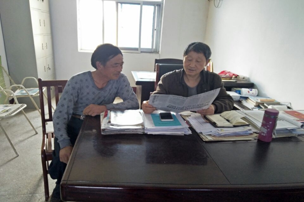 将“两会”精神报道送到老党员手中。