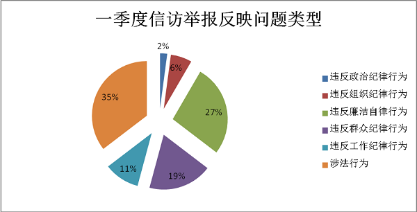从信访量来看,一季度共受理信访举报61件,同比上升17%。其中纪检监察检举控告业务范围内举报41件,业务范围外20件。