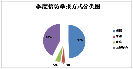从信访举报方式来看,来信30件,来访2件,电话举报3件,上级转办26件。