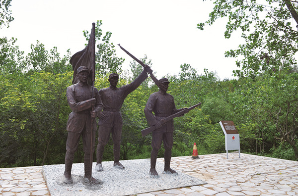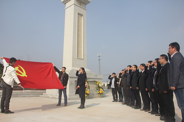 共产党员在太平村烈士纪念碑前追忆先烈重温入党誓词