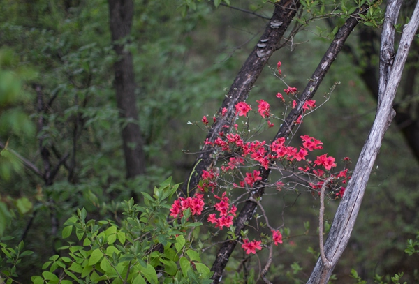 映山红扎根山野僻壤、恣意盛放的情景,随处可见,红的像火,炽烈如歌。艳而不媚,浓而不俗,像“星火”,毕剥着早春的静谧,点燃了山野的寂寞和冷清。