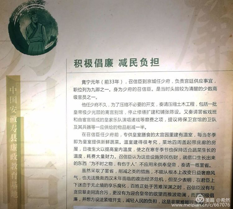 在寿县楚文化博物馆,作家们认真仔细地参观廉政文化教育基地,不放过每一个介绍和展示图景。廉政教育基地以文字、图片、雕塑、书画等多种手段,向参观者昭示着:“廉政之花盛开,执政能力提高,和谐社会构成”这一颠扑不破的真理。他们中的孙叔敖、时苗、胡氏“父子清官”、吕氏“父子宰相”、孙家鼐、孙大光等,在工作中恪尽职守、励精图治,鞠躬尽瘁,在生活中严格操守、淡泊戒奢,崇德尚俭,成为世人争相模仿学习的典范。