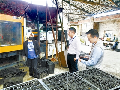 图二:江西省萍乡市湘东区委、区政府牵头,成立环保督察组,严查全区“散乱污”企业,并深挖背后存在的基层党员干部涉黑涉恶等腐败问题。图为近期督察组人员在该区腊市镇庙岭村某“散乱污”企业开展督察。李诚伟 摄