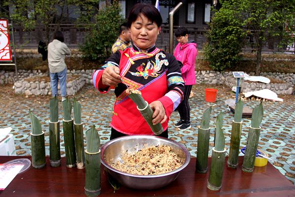 取一节绿竹,配上粽叶,填满调制好的糯米,竹与叶的清香混合着米香,味蕾循着香气迫不及待跳起了舞蹈。