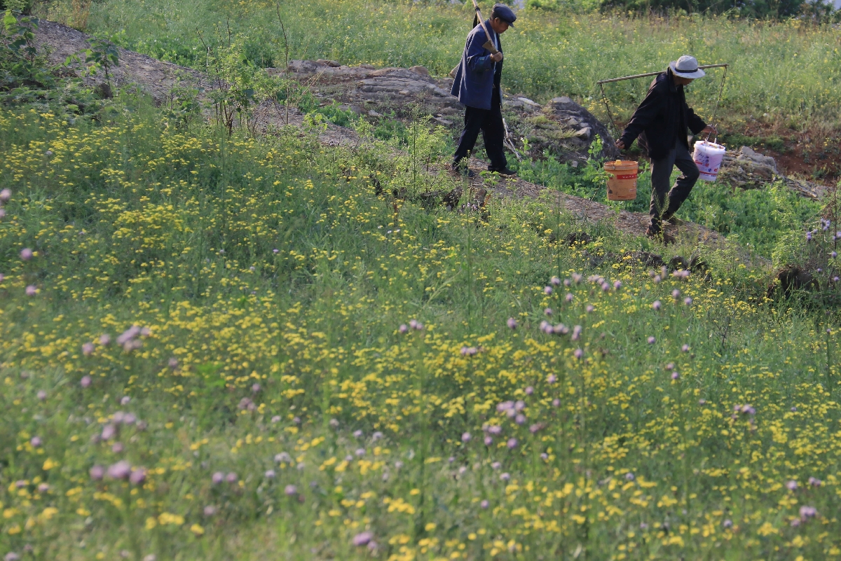 老农陇上事耕耘,花间水畔绿如茵