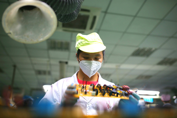 在高精尖企业中,一名员工正在检测元件。创新决定发展,科技决定未来,国家的繁荣富强,就凝结在这一颗颗小小的元件之中。