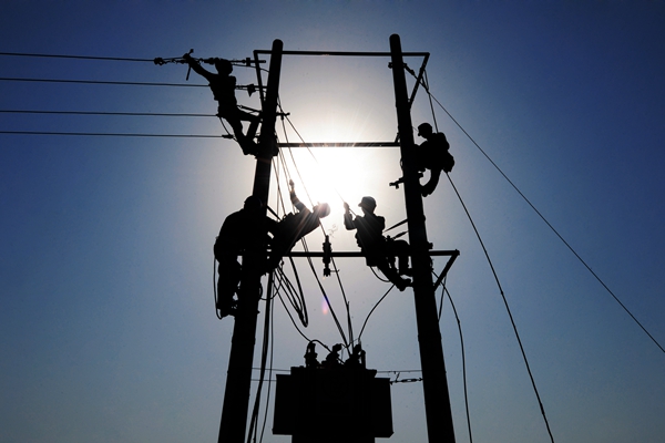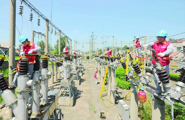 电力员工在永康镇110千伏变电站内对故障设备进行抢修。
