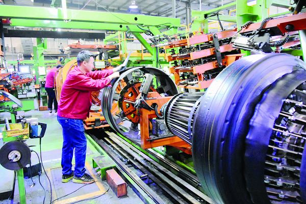 县经济开发区企业德轮橡胶股份有限公司员工在生产车间紧张地忙碌着。