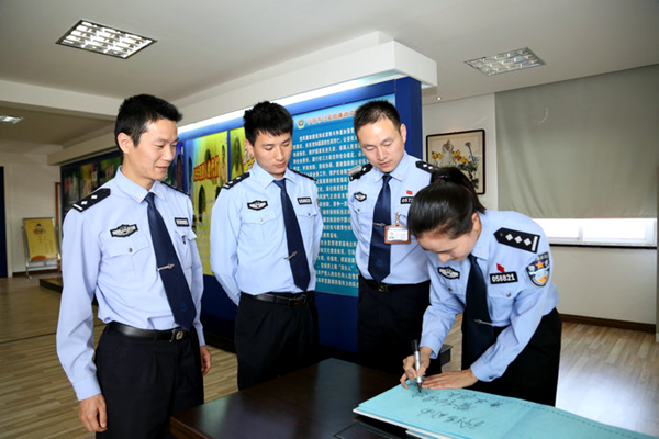 受教——青年干警在参观完廉政文化墙和反面典型案例展板后,用心书写自己对党风廉政建设和反腐败斗争必胜的信心。