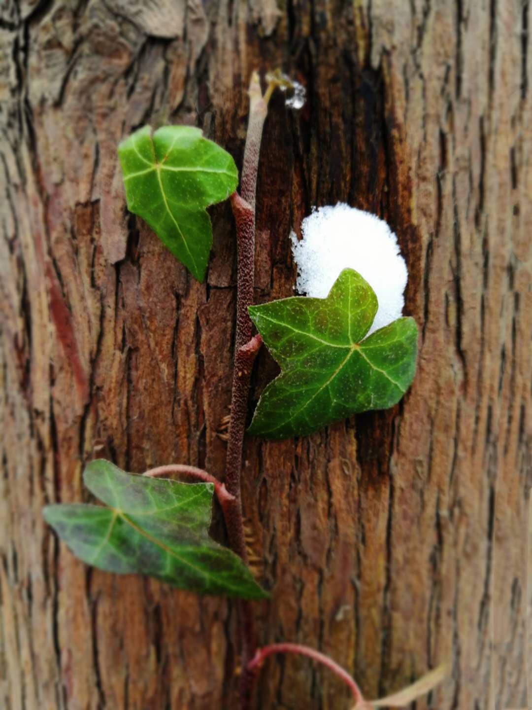 幼藤逢春吐新芽,雪落翠枝似闲花