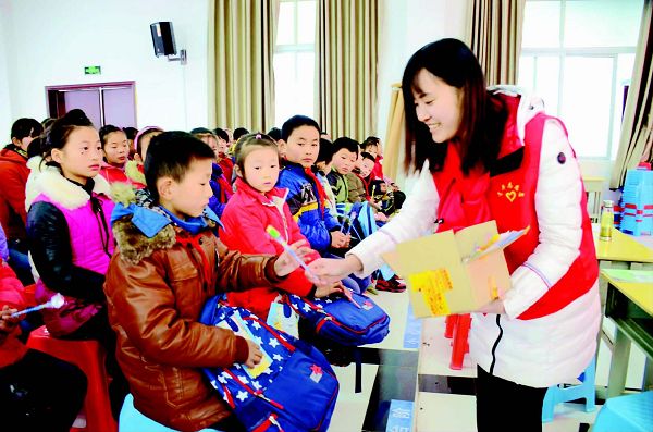 青年志愿者帮助桑涧镇中心小学50名家庭困难的留守儿童实现自己的微心愿。