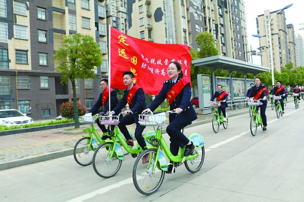 县国地税20名共青团员组成税收宣传自行车队开展“绿色出行税宣同行”绿色税宣活动。