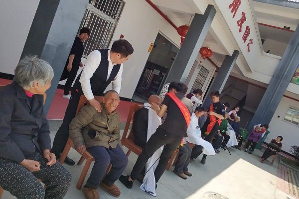 霍山县愿者协会的志愿者定期到县经济开发区敬老院为老人送温暖