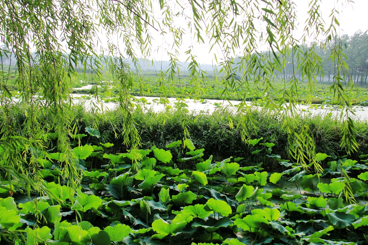 杨柳垂垂风袅袅,嫩荷无数青钿小