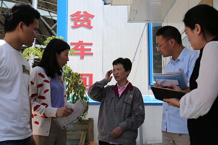 图为深入扶贫车间了解贫困户就业情况及自身合法权益维护情况