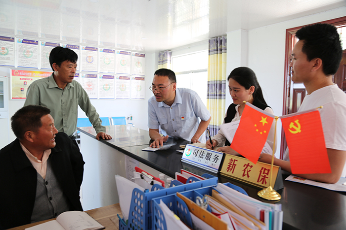 图为调研马集村部司法服务窗口人员履职情况,确保脱贫攻坚领域执法司法公正