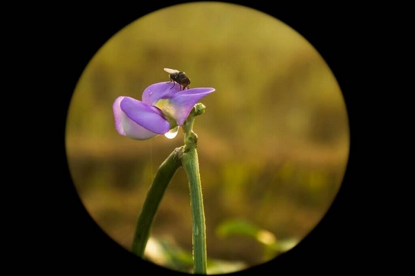 豆角连豆花,蜜蜂传粉忙。