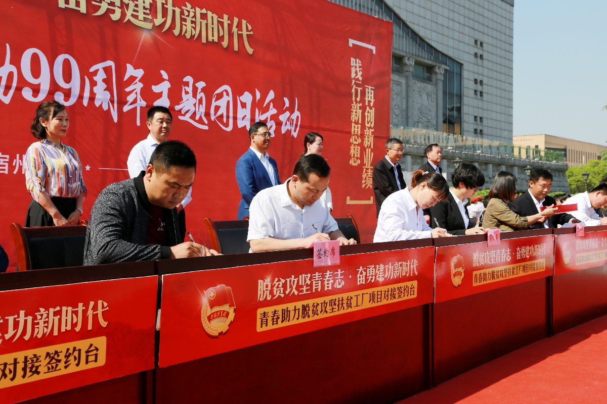 脱贫攻坚青春志,奋勇建功新时代。宿州市举办纪念五四运动99周年主题团日活动,激励全市广大青年干部大力弘扬“五四”光荣传统,积极主动投身和参与脱贫攻坚行动。