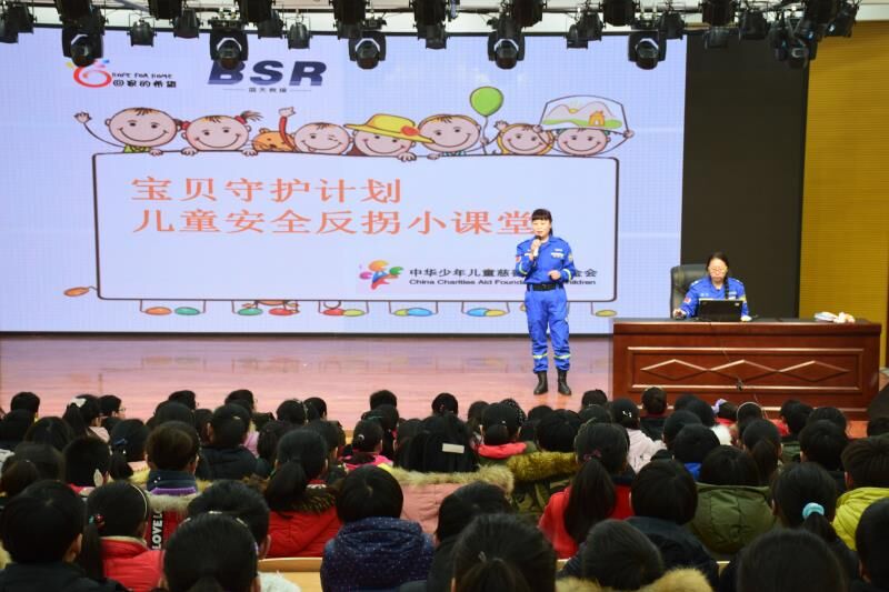 宿州蓝天救援队的青年志愿者们谋划开展“宝贝守护计划”,走进校园开展防拐骗知识普及宣传活动。(宿州市纪委监委)