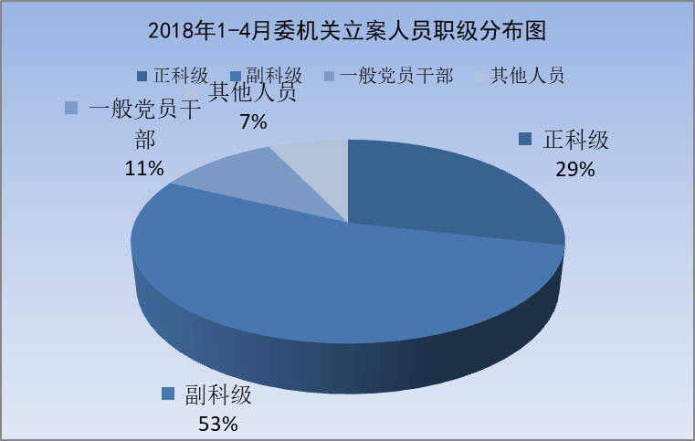 在审查调查力度上下功夫。该县始终坚持以问题为导向,突出重点、抓住关键,不断加大纠正“四风”和惩治腐败力度。今年1-4月,全县各级纪检监察机关立案人数中,正科级8人,占比29%;副科级15人,占比53%;一般党员干部3人,占比11%;其他人员2人,占比7%。