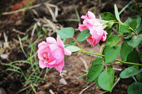 蔷薇花:翠融红绽怜蜂蝶 带雨和露一枝新