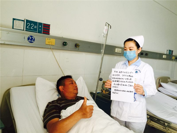大爱无声。因聋哑病人无法正常沟通,医护人员便为其建立了护患沟通提示板,并在术前通过提示板与患者进行充分交流沟通,获得病患由衷的点赞。