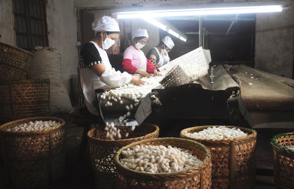 人工选茧:剔除不能缫丝的次茧及下茧
