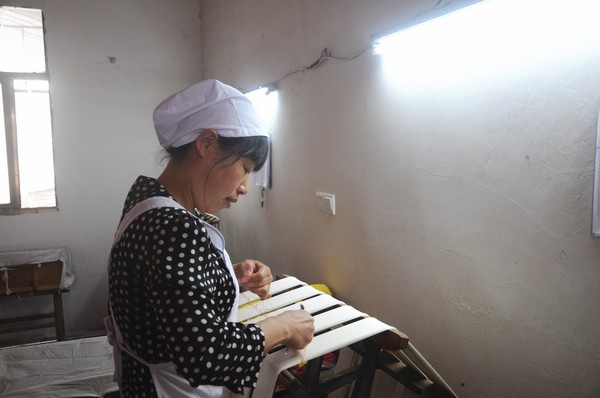 手工编丝:络丝前处理工序,对蚕丝进行处理,防止络丝工程中蚕丝发生缠绞