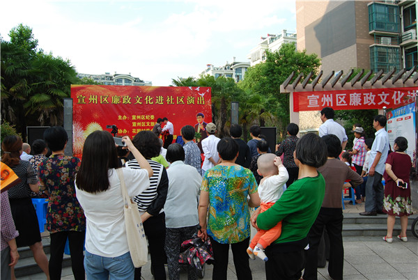 近日,宣州区纪委监委深入挖掘地域文化特色,借助国家级非物质文化遗产皖南花鼓戏这一表现形式,立足“唱小戏、扬大廉”,积极开展廉政文化进社区演出活动,旨在以群众喜闻乐见的方式,传播廉政文化,弘扬清风正气。此次上演的廉政题材花鼓戏,故事情节环环相扣,叙事风格十分接地气,选材创作既传承经典又紧贴社会热点,让社区居民和党员干部在领略传统文化魅力的同时,深受感染和启发,自觉增强“以廉为荣、以贪为耻”的意识。