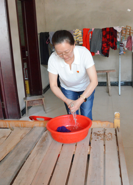 第一支部党员开展志愿服务活动,为白楼村因病致残致贫的贫困户打扫卫生,改善贫困户居住环境。(宿州市纪委监委 刘漫漫)